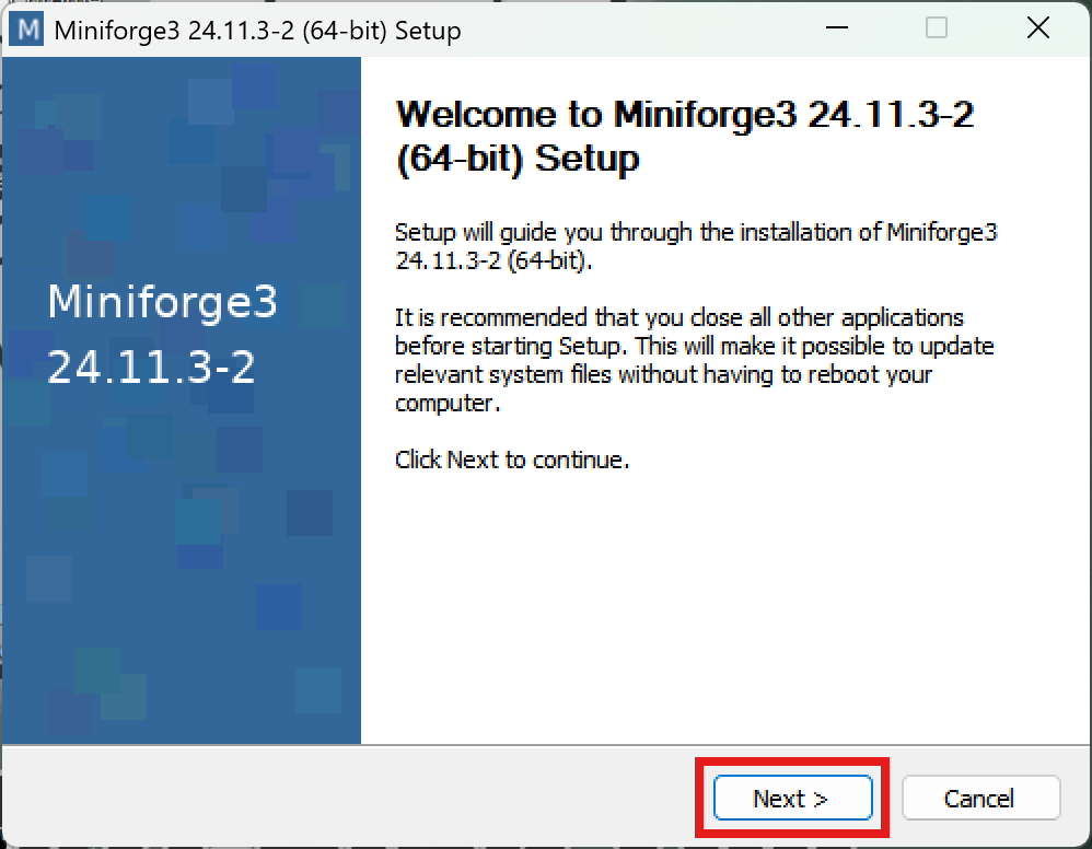 Download Miniforge version from here